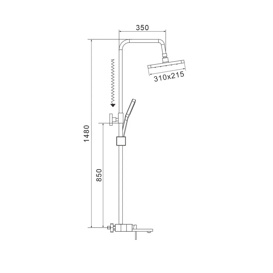 Душевая система Shevanik S6836, хром. Количество режимов струи: 3. Размер верхнего душа: 31x21,5 см. Управление: рычажное. Излив для наполнения ванны: да.