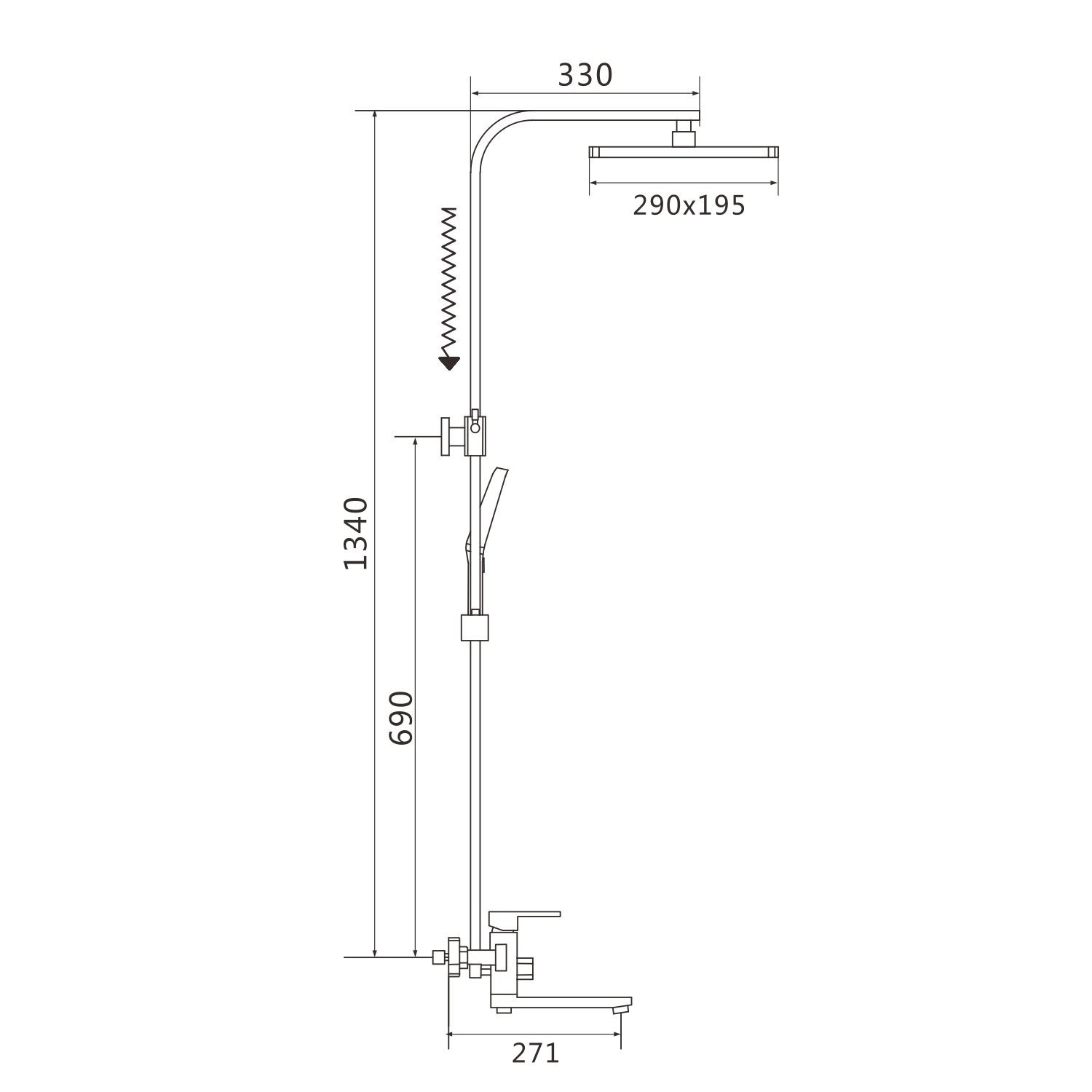 Форма верхнего душа: прямоугольная;