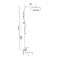 Верхний душ размером 290x195 мм из ABS-пластика регулируется по высоте благодаря телескопической штанге и по наклону с помощью встроенного шарнира, что обеспечивает максимальный комфорт и удобство использования. Самоочищающиеся силиконовые форсунки предотвращают образование известкового налета и сохраняют чистоту и силу потока воды.
