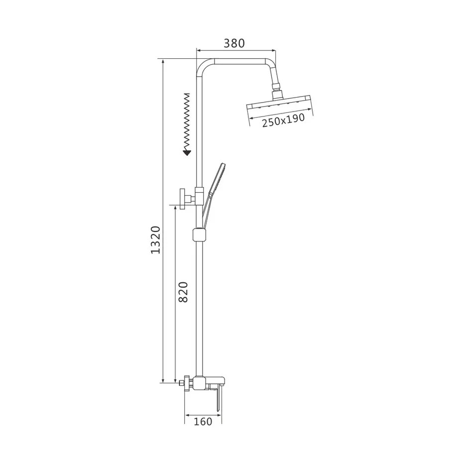 Душевая система Shevanik S8836, хром. Количество режимов струи: 2. Размер верхнего душа: 25x19 см. Управление: рычажное. Излив для наполнения ванны: да.