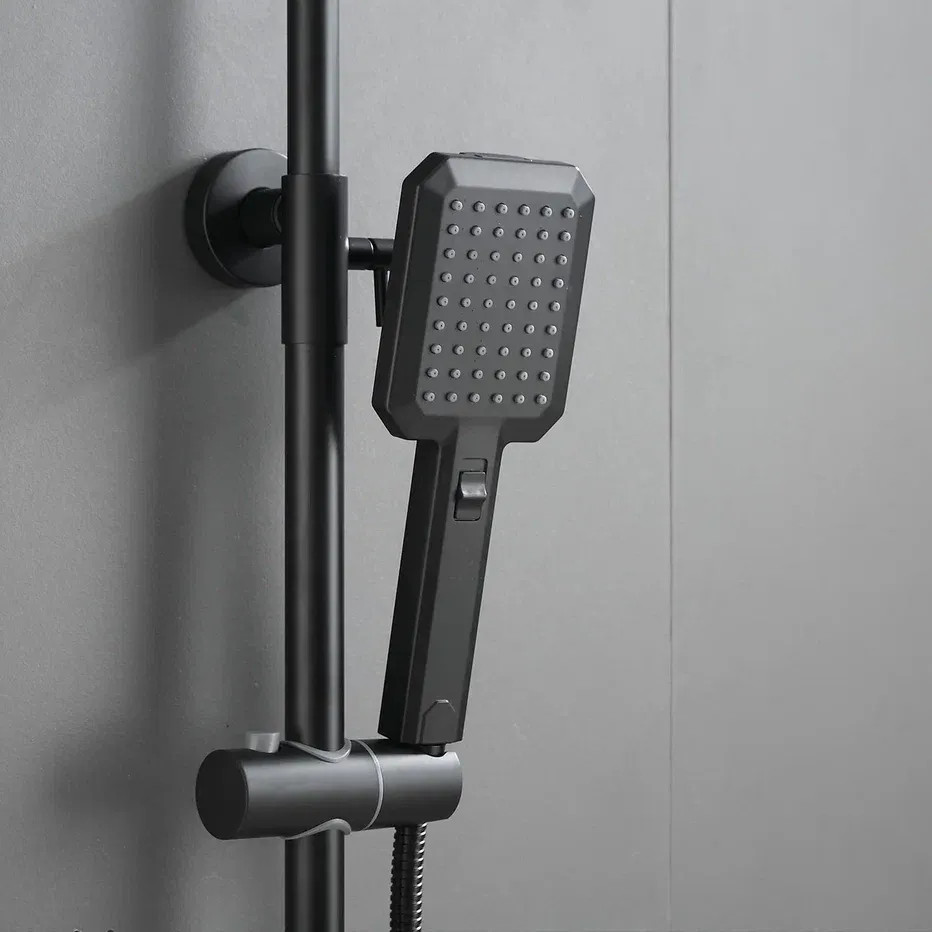 Душевая система Shevanik S8836H, черный. Количество режимов струи: 2. Размер верхнего душа: 25x19 см. Управление: рычажное. Излив для наполнения ванны: да.