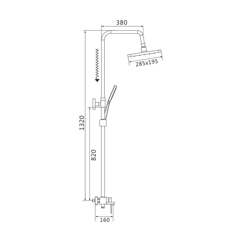 Душевая система Shevanik S8936, хром. Количество режимов струи: 3. Размер верхнего душа: 28,5x19,5 см. Управление: рычажное. Излив для наполнения ванны: да.