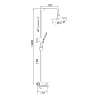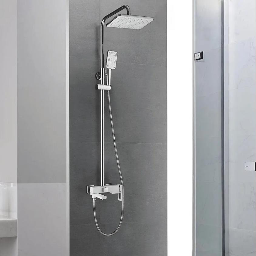 Душевая система Shevanik S9036F, белый/хром. Количество режимов струи: 3. Размер верхнего душа: 28x19 см. Управление: рычажное. Излив для наполнения ванны: да.