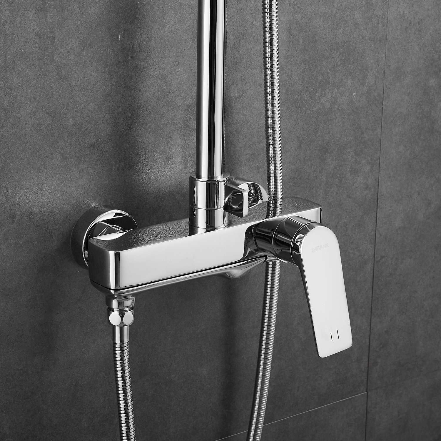 Душевая система Shevanik S9136, хром. Количество режимов струи: 3. Размер верхнего душа: 31x21,5 см. Управление: рычажное. Излив для наполнения ванны: да.