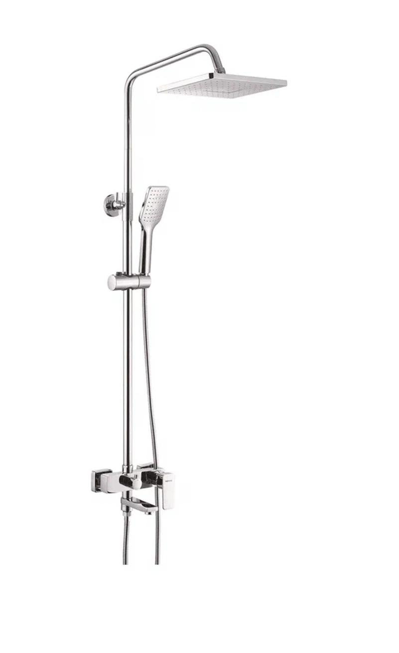 Душевая система Shevanik S9536, хром. Количество режимов струи: 3. Размер верхнего душа: 26,5x18 см. Управление: рычажное. Излив для наполнения ванны: да.