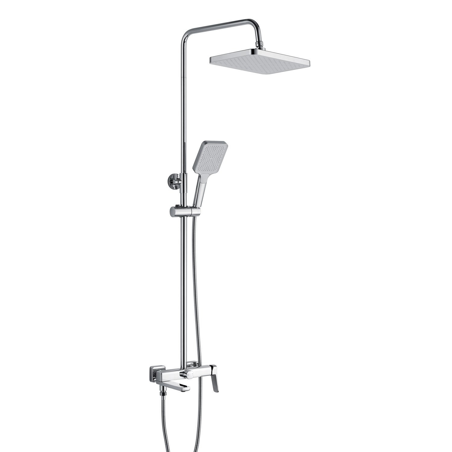 Душевая система Shevanik S9936, хром. Количество режимов струи: 3. Размер верхнего душа: 32x21 см. Управление: рычажное. Излив для наполнения ванны: да.