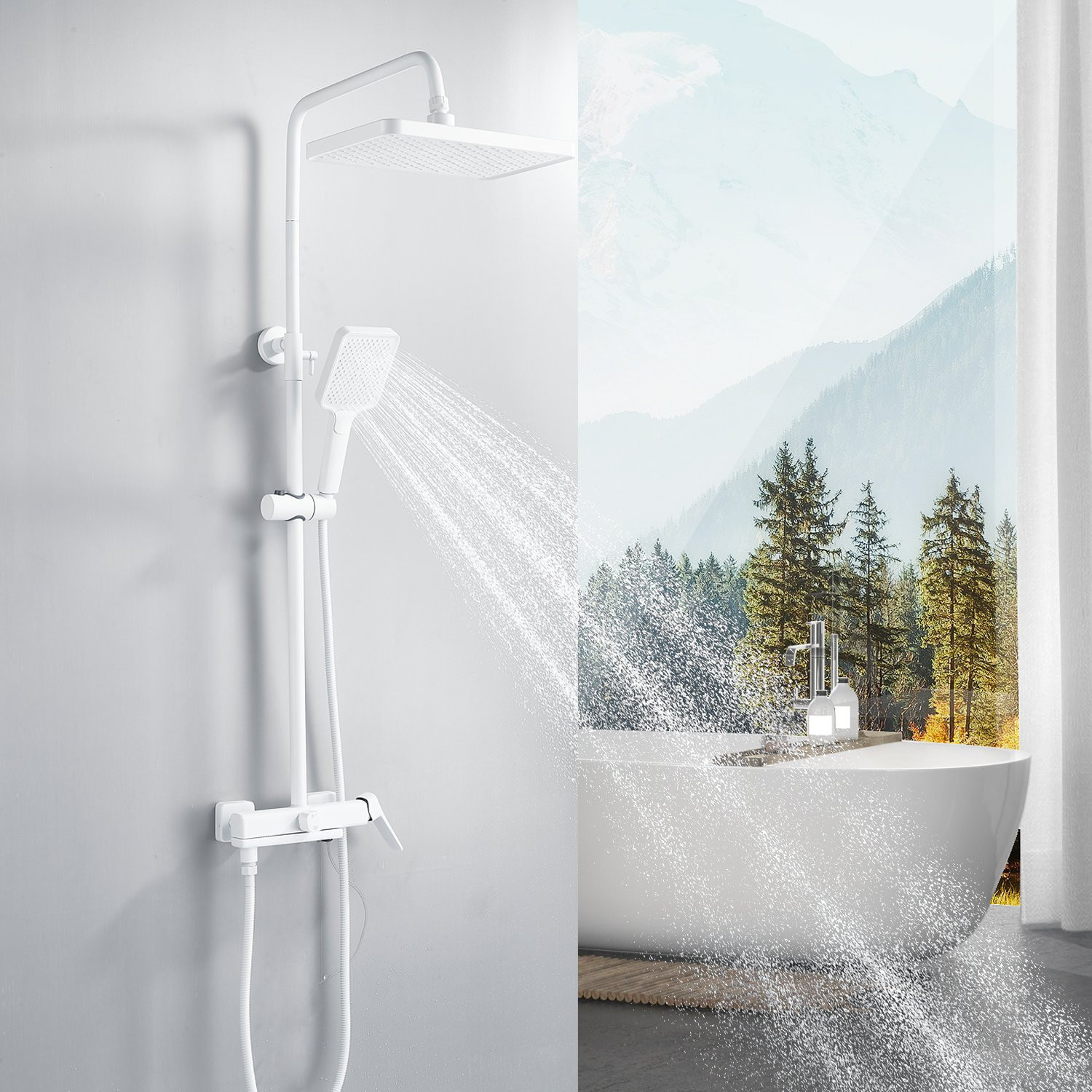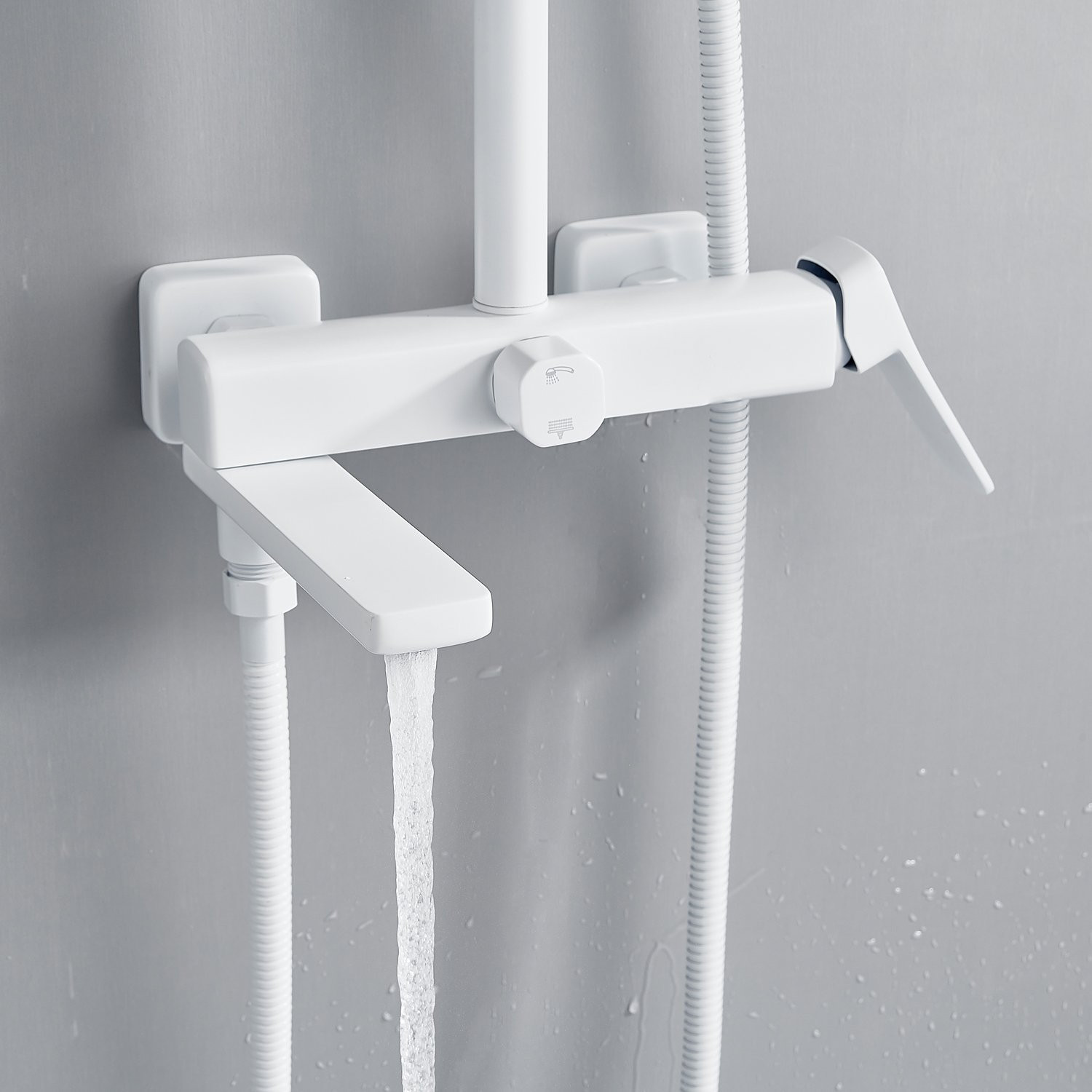 Душевая система Shevanik S9936C, белый. Количество режимов струи: 3. Размер верхнего душа: 32x21 см. Управление: рычажное. Излив для наполнения ванны: да.