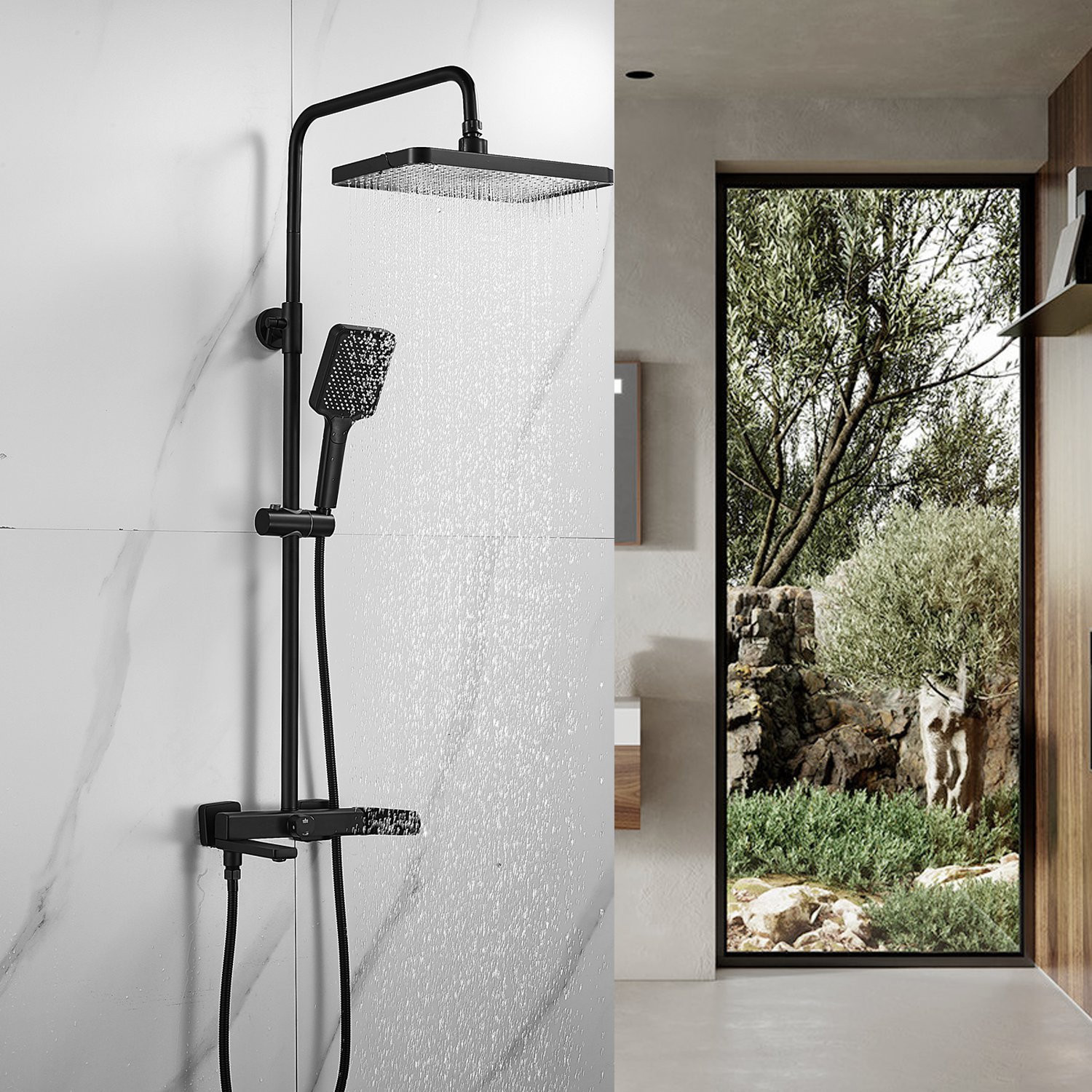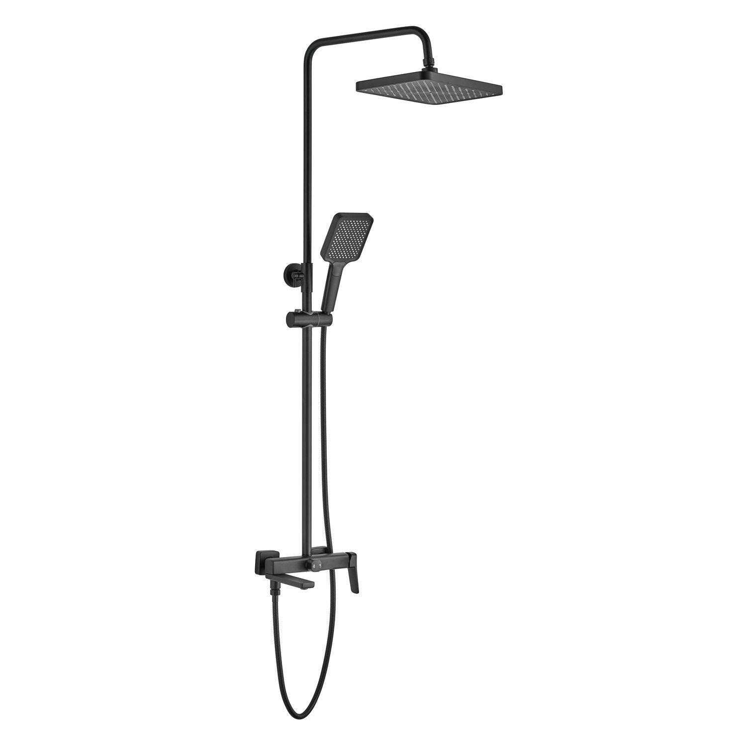 Душевая система Shevanik S9936H, черный. Количество режимов струи: 3. Размер верхнего душа: 32x21 см. Управление: рычажное. Излив для наполнения ванны: да.