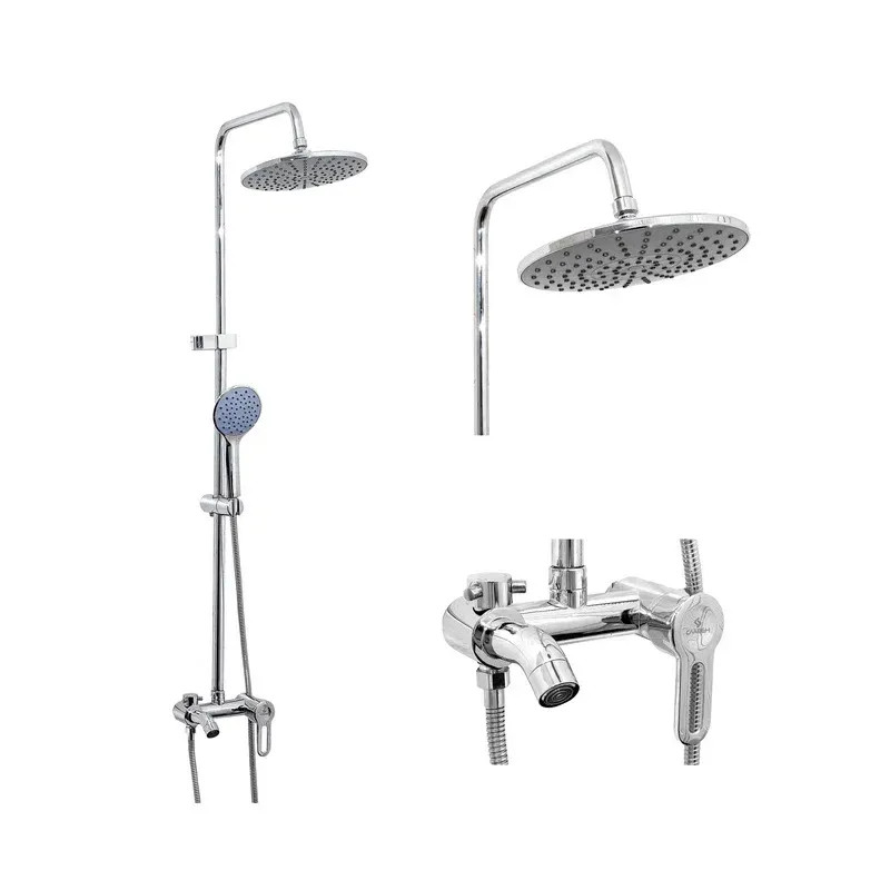 Современный однорычажный смеситель для ванны с тропическим душем, одноручный, комплект от компании «СЛАВЕН» c собственной сборочной линией полного цикла в Подмосковье.