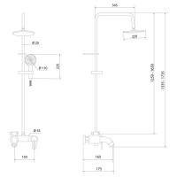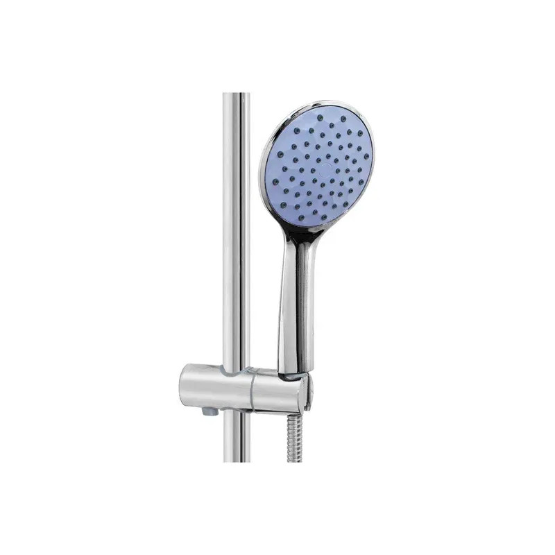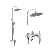 Комплектация: смеситель, верхний душ, штанга, держатель душевой лейки, душевая лейка, шланг, эксцентрики, декоративные отражатели;