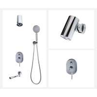 Комплектация: смеситель, внутренняя часть, верхний душ, шланговое подключение с держателем лейки, душевая лейка, шланг, излив;