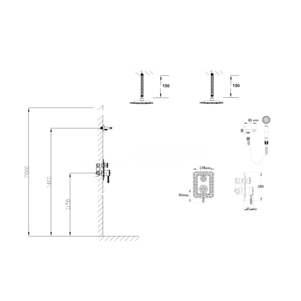 Размер верхнего душа, см: 21x21;