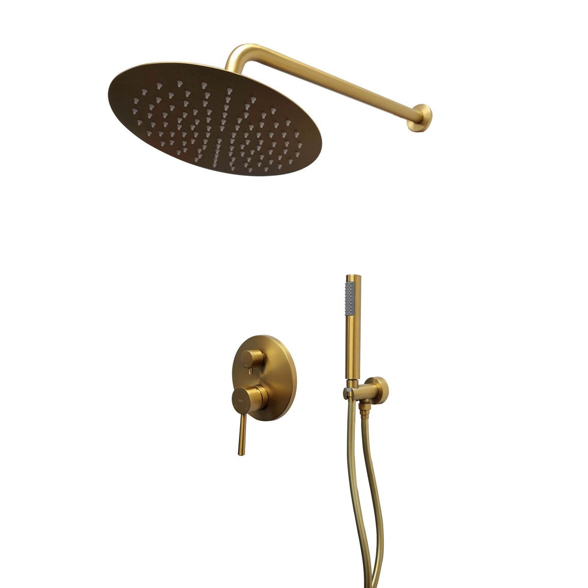 Комплектация: смеситель, внутренняя часть, кронштейн верхнего душа, шланговое подключение, верхний душ, душевая лейка, шланг;