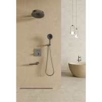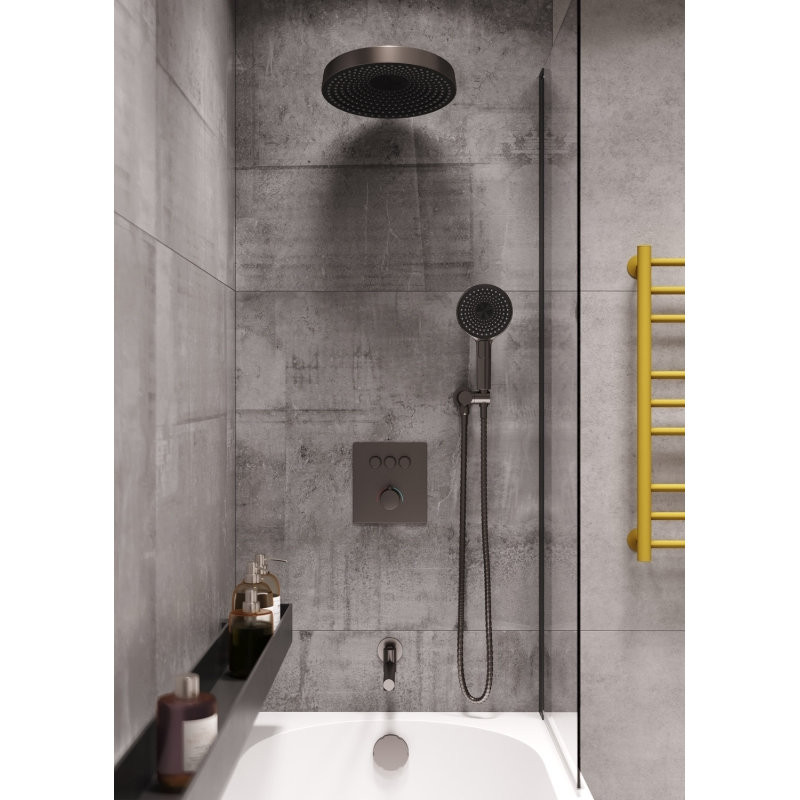 Душевая система встраиваемая с термостатом Bronze de Luxe 1011GM. Цвет: графит. Материал: латунь. Управление: термостат. Механизм: термостатический картридж. Круглый верхний (тропический) душ, диаметром 30 см. Длина излива 22,95 см.