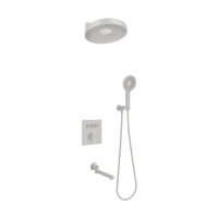 Душевая система встраиваемая с термостатом Bronze de Luxe 1011W. Цвет: белый матовый. Материал: латунь. Управление: термостат. Механизм: термостатический картридж. Круглый верхний (тропический) душ, диаметром 30 см. Длина излива 22,95 см.