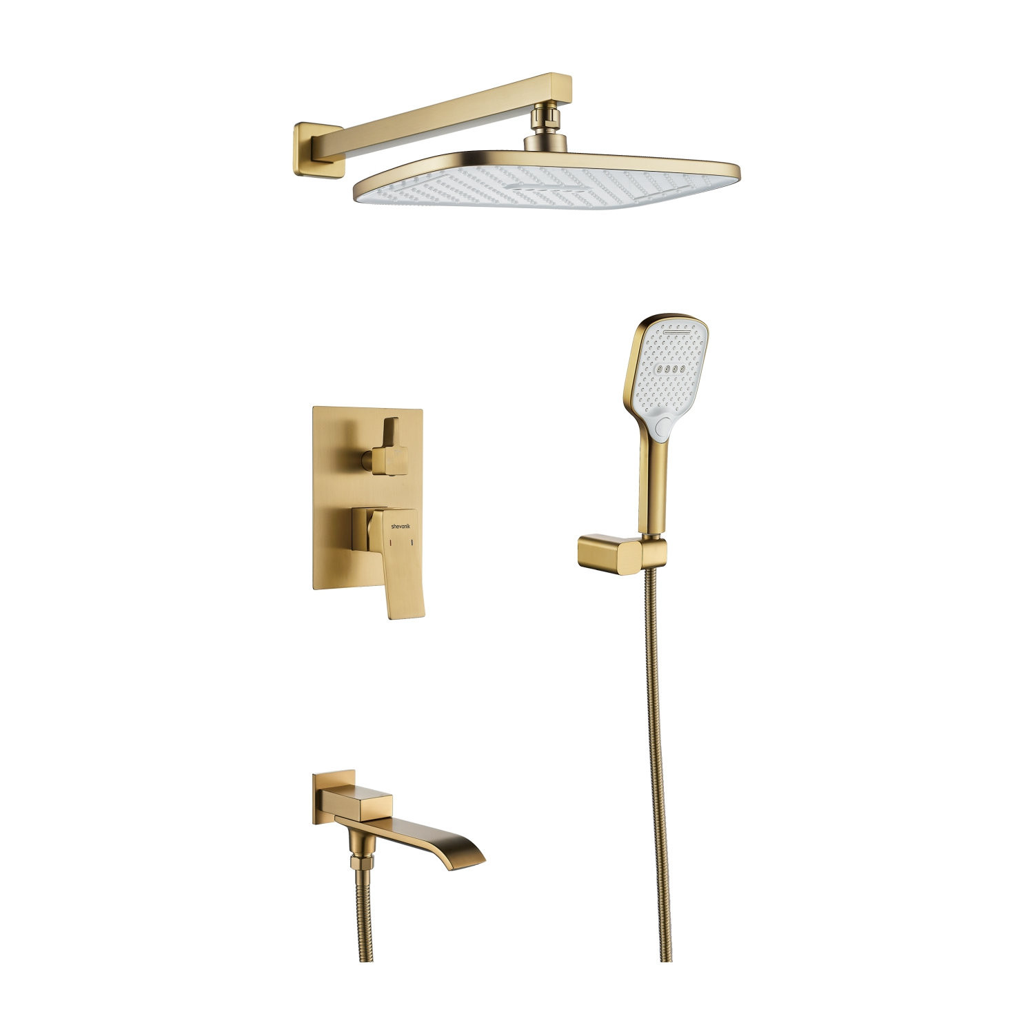 Встраиваемая душевая система Shevanik S4035G в современном цвете "золотой сатин" (матовое полированное золото) — это идеальное сочетание современного дизайна и инновационных технологий, созданное для вашего комфорта и удовольствия. Корпус смесителя и его внутренняя часть изготовлены из прочной латуни, что гарантирует долговечность и надежность в эксплуатации.