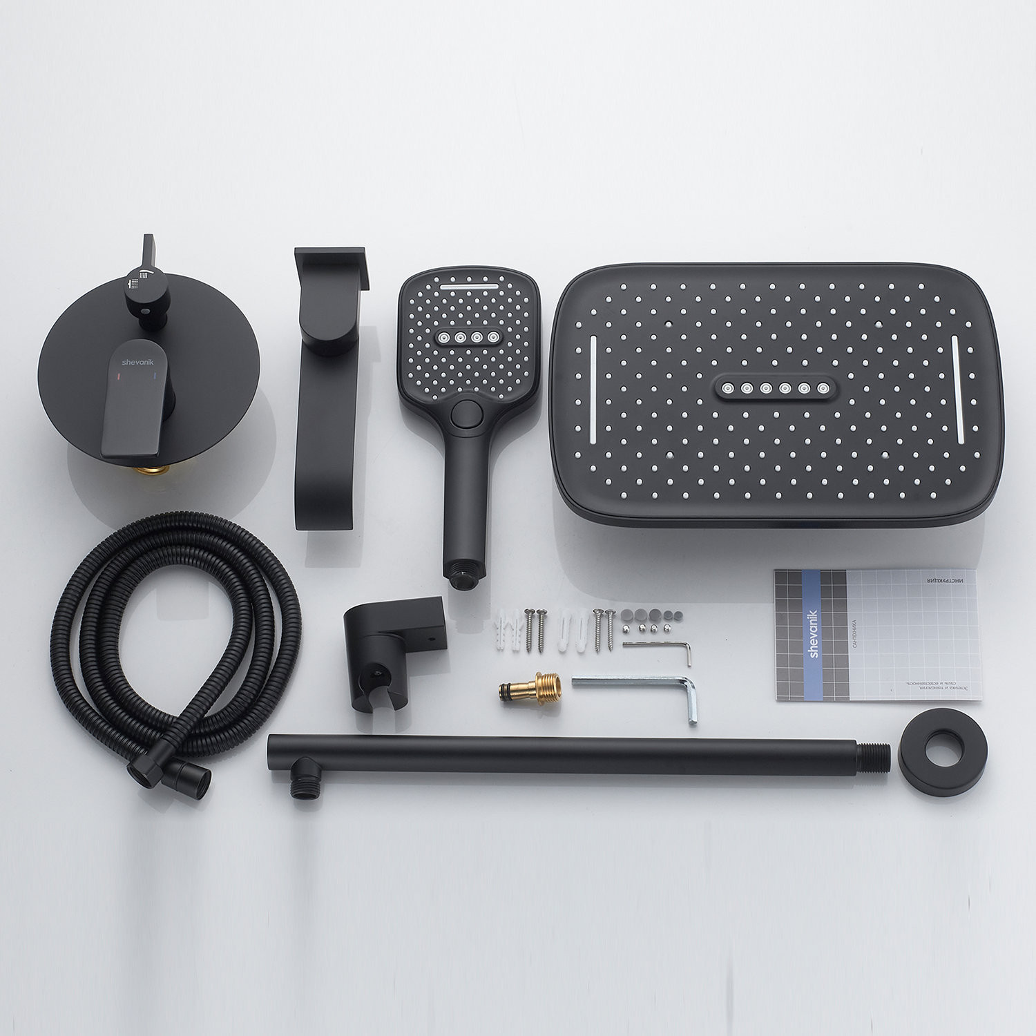Встраиваемая душевая система Shevanik S4135H в черном матовом цвете — это идеальное сочетание современного дизайна и инновационных технологий, созданное для вашего комфорта и удовольствия. Корпус смесителя и его внутренняя часть изготовлены из прочной латуни, что гарантирует долговечность и надежность в эксплуатации.