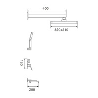 Верхний душ прямоугольной формы размером 320х210 мм выполнен из ABS-пластика с силиконовыми форсунками, которые легко очищаются от известкового налета. Верхний душ крепится к настенному кронштейну длиной 40 см через шарнир, позволяющий поворачивать его по всей оси для удобства использования.
