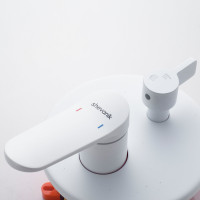 В комплект входит всё необходимое для полного оснащения душевой зоны: стильный смеситель с удобным рычажным управлением и керамическим картриджем для плавной регулировки температуры и напора воды, поворотный излив длиной 190 мм с аэратором, просторный верхний душ диаметром 250 мм и трехрежимная душевая лейка. Особого внимания заслуживают силиконовые форсунки на верхнем душе и лейке — они не только обеспечивают равномерный поток воды, но и легко очищаются от известковых отложений.