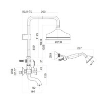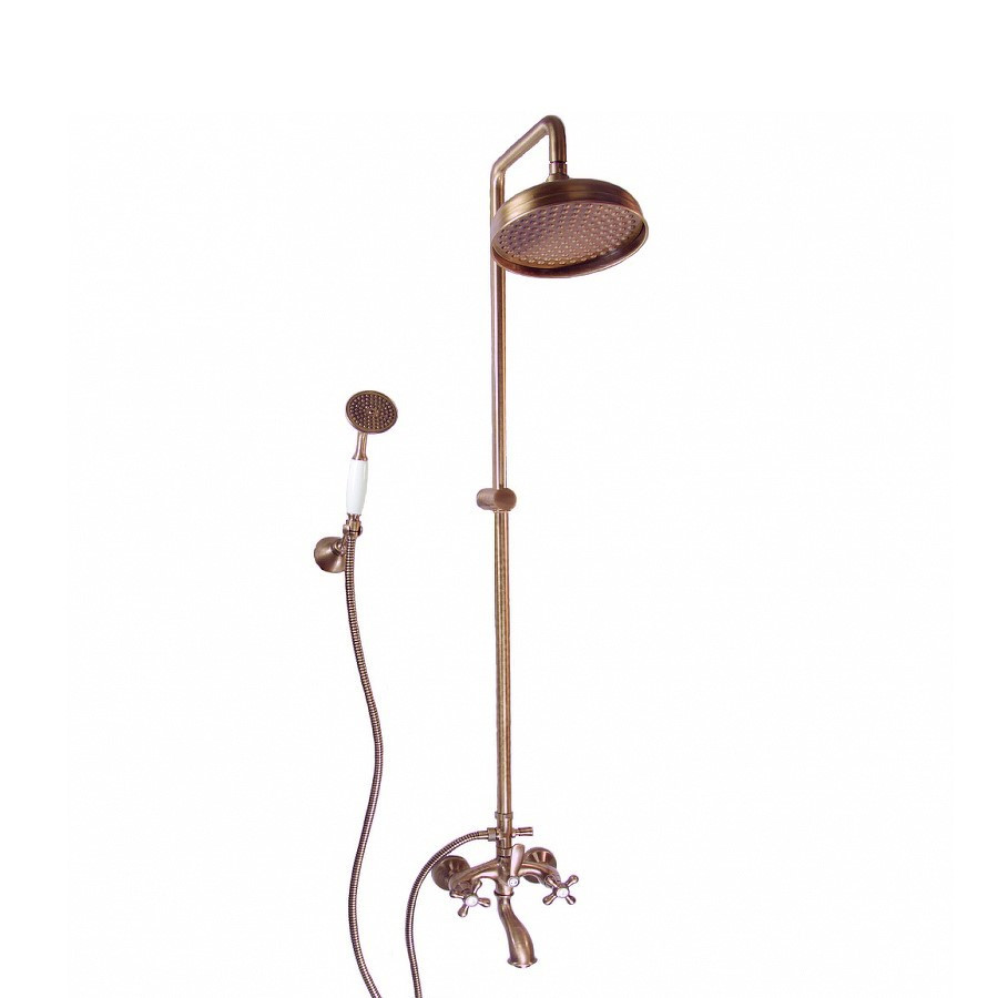 Комплектация: смеситель, верхний душ, душевая лейка, держатель душевой лейки, шланг, стойка;