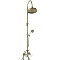 Комплектация: смеситель, верхний душ, душевая лейка, шланг, стойка;