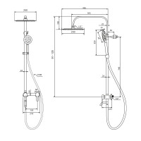 Материал: нержавеющая сталь. Цвет: сатин. Керамический картридж 40 мм. Керамический дивертор. Поворотный излив. Шланг в оплетке из нержавеющей стали 1,5 м. Подвижный держатель лейки. Душевая лейка Easy Clean (1 режим). Регулируемая высота душевой стойки 91-120 см. Верхний душ Easy Clean. Диаметр верхнего душа 20 см. Эксцентрики, отражатели, крепеж в комплекте