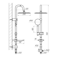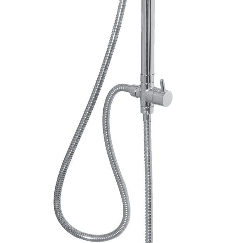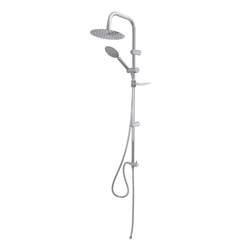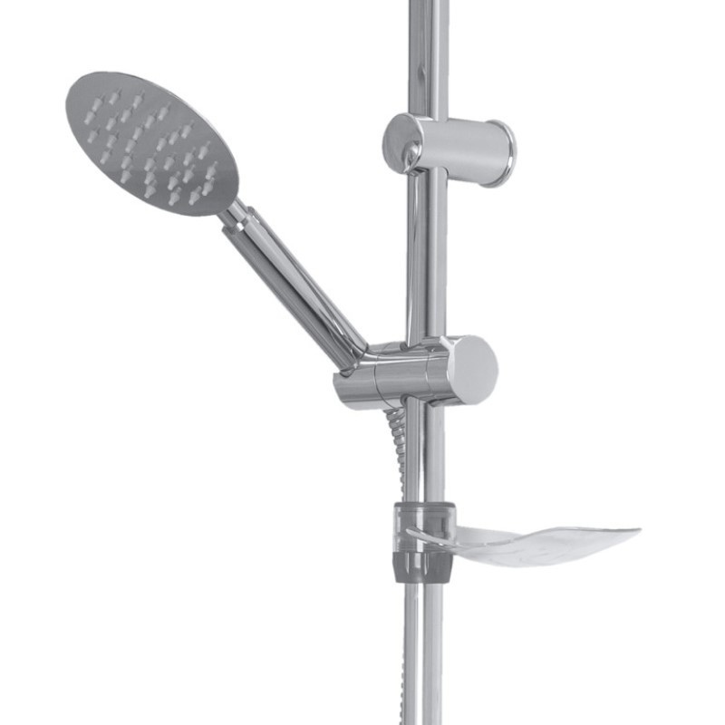Комплектация: штанга, верхний душ, душевая лейка, держатель лейки, мыльница, шланг, крепления;