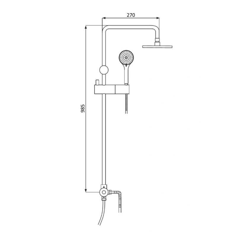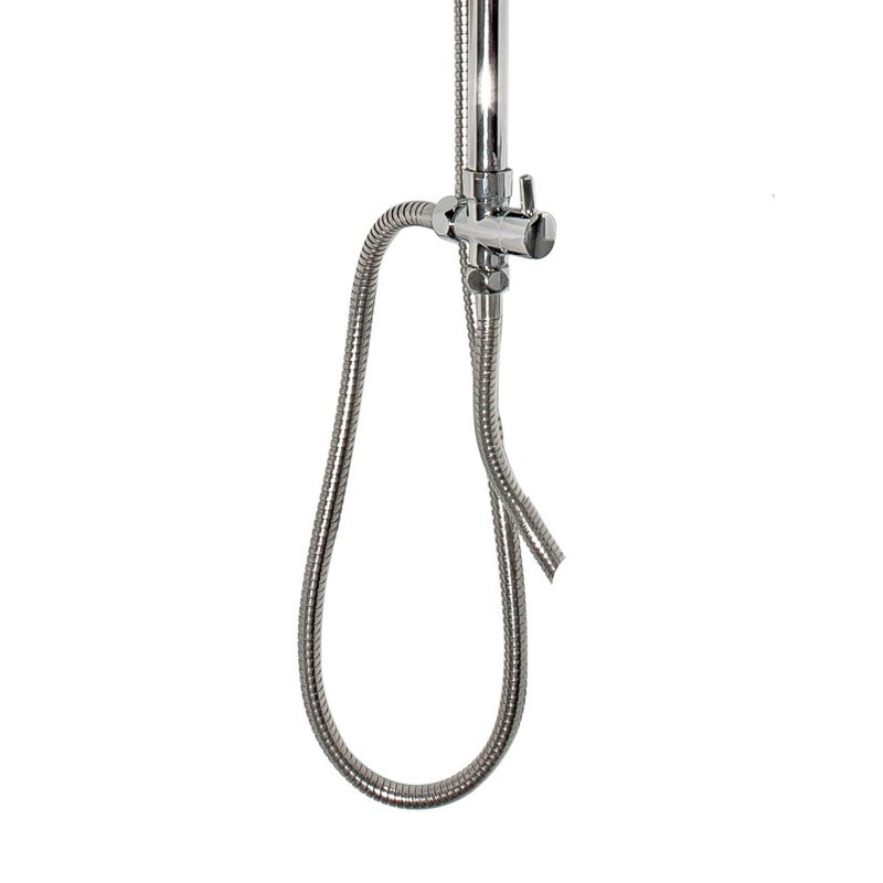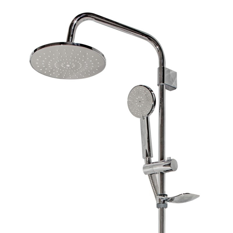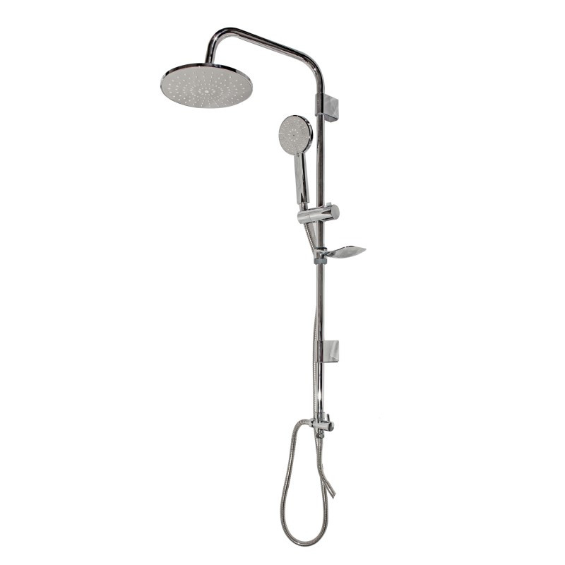 Комплектация: штанга, верхний душ, душевая лейка, держатель лейки, мыльница, шланг, крепления;