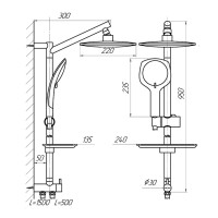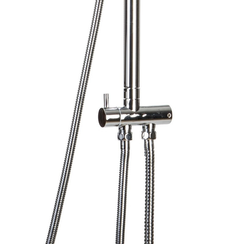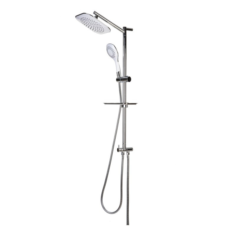 Комплектация: штанга, верхний душ, душевая лейка, держатель лейки, мыльница, шланг, крепления;