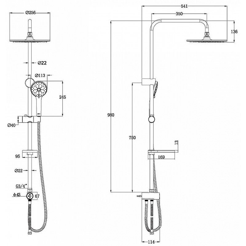 LM8809C "Аксессуары" Душевой гарнитур без смесителя, c верхней душ. лейкой "Тропический дождь" 256 м