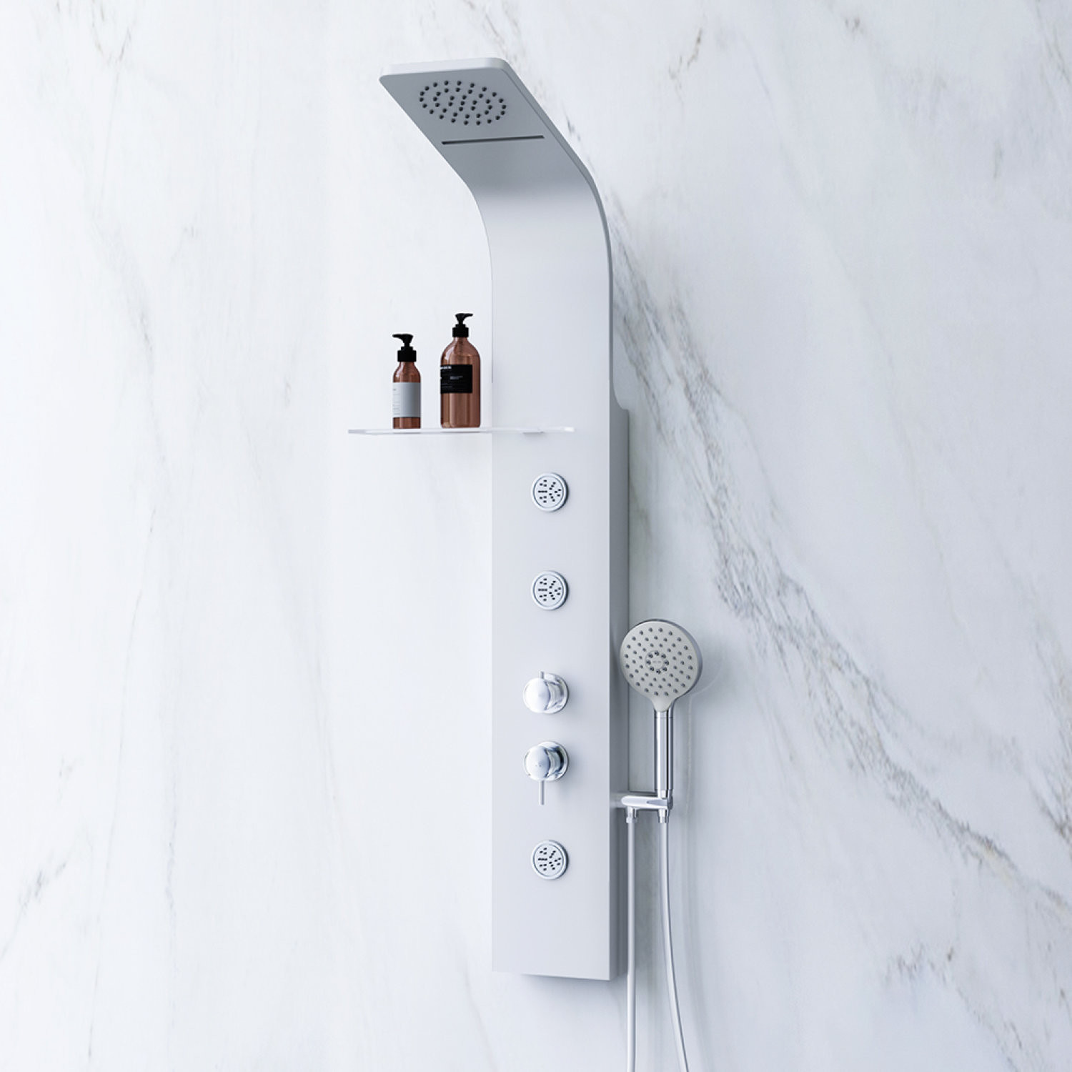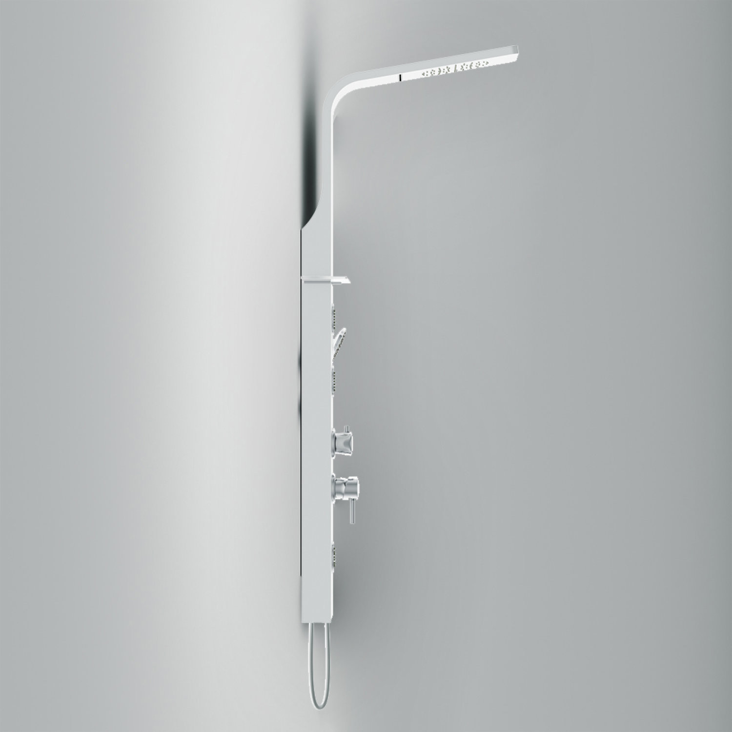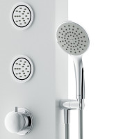 Стильная и компактная гидромассажная панель Joy подходит для установки в ванну и душевые ограждения любого типа.