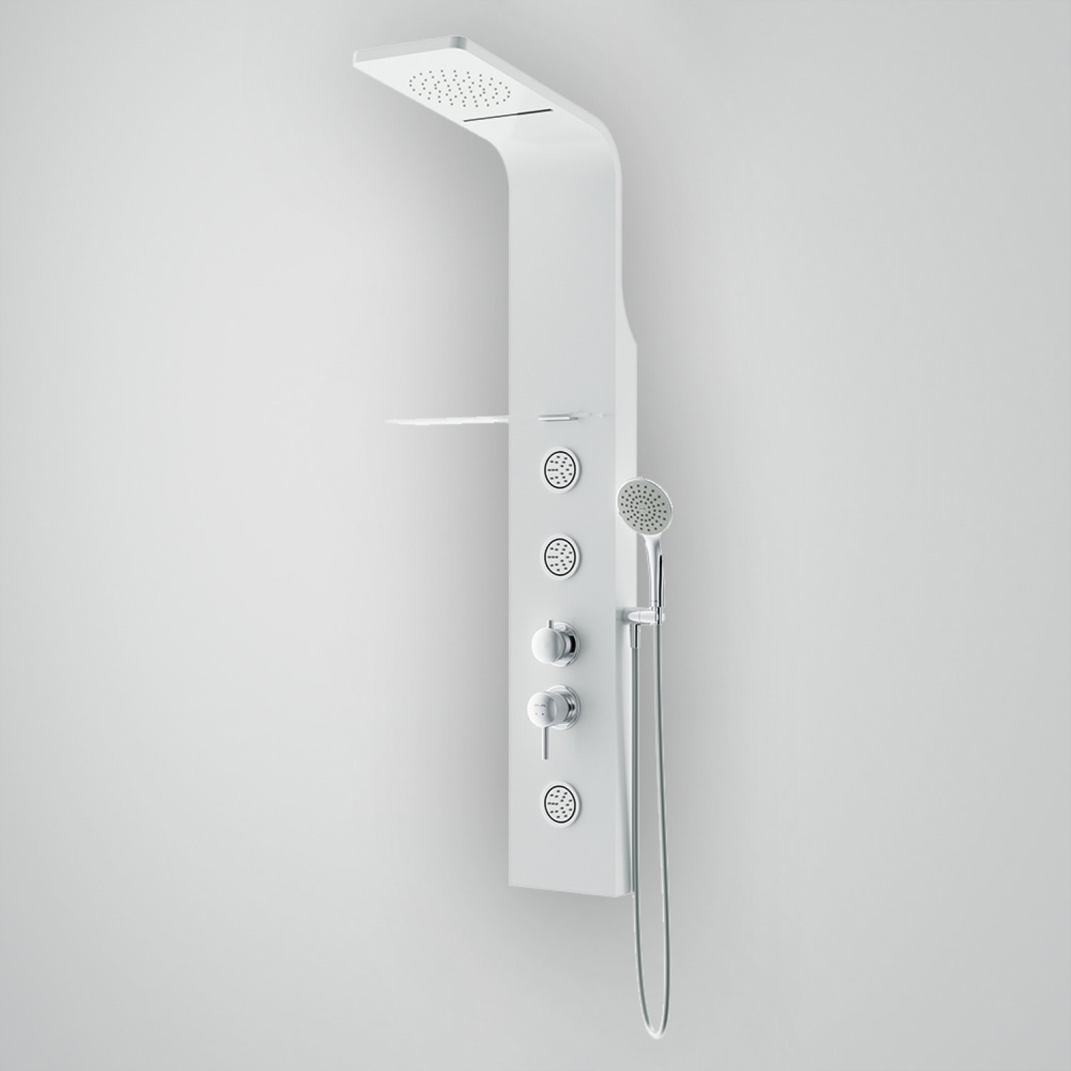 Продуманные детали для удобства использования: верхний душ 155 мм, водопад 160 мм, 3 регулируемых гидромассажных форсунки, полка из оргстекла (лево/правосторонний монтаж), смеситель с переключателем режимов, ручной душ 100 мм (1 режим) с держателем и шлангом 1500 мм.