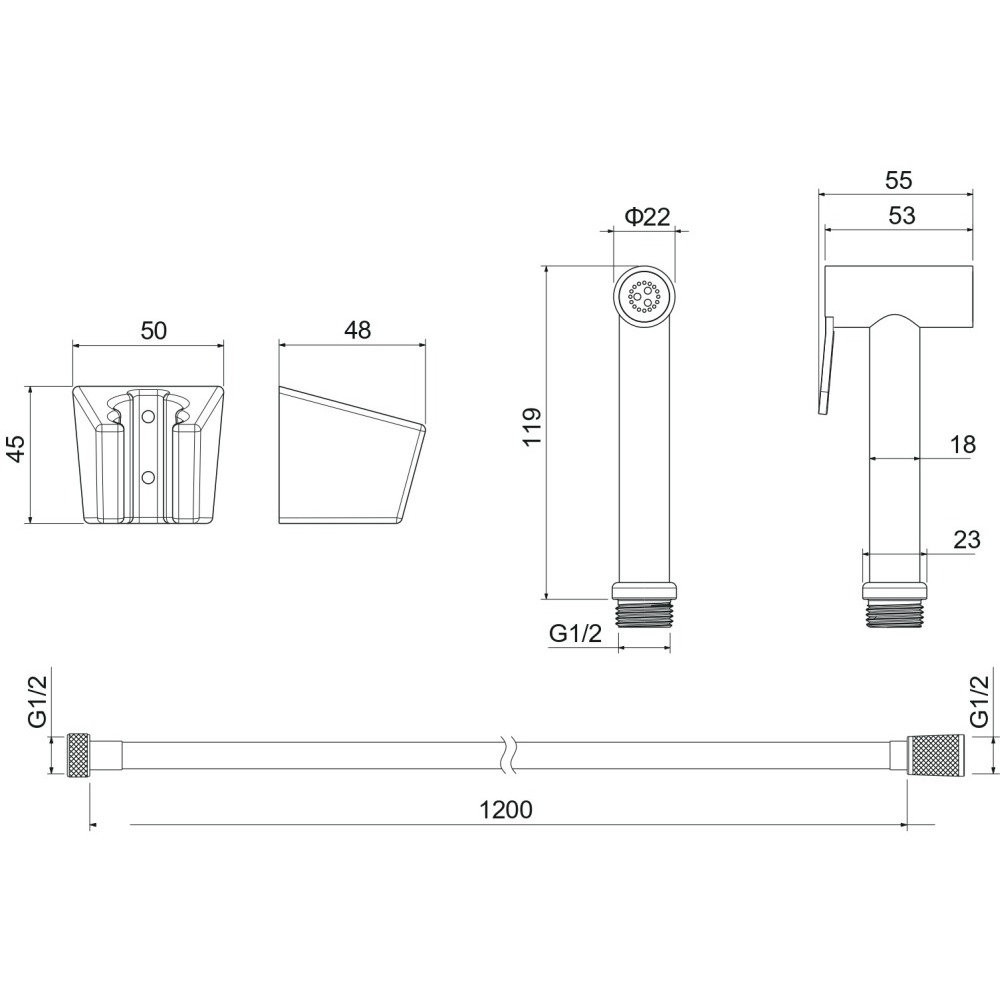 AQ2054BG гигиенический ручной душ со шлангом 120 см и держателем, шлиф. золото