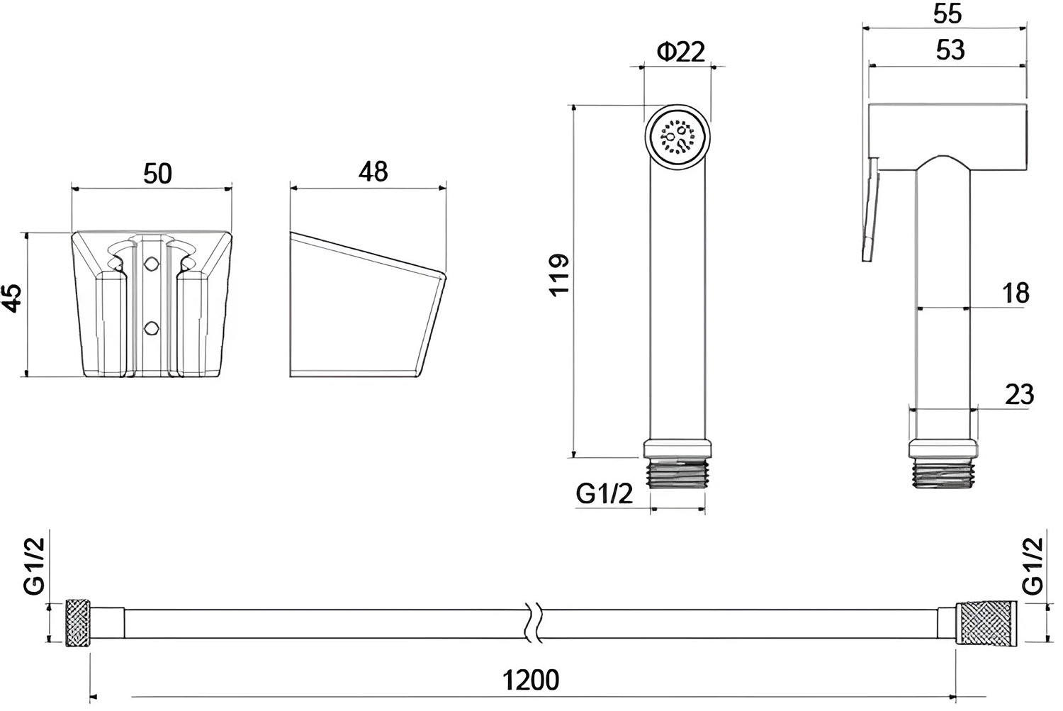 AQ2054MB гигиенический ручной душ со шлангом 120 см и держателем, матовый черный