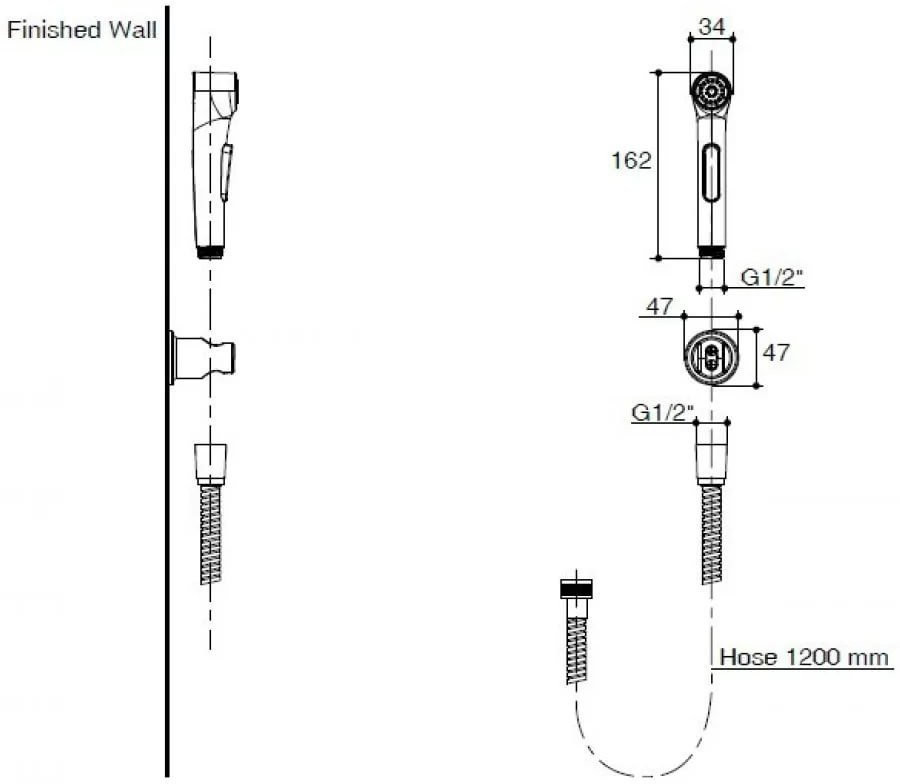 E97258-CP ELATE гигиенический ручной душ со шлангом 120 см и держателем