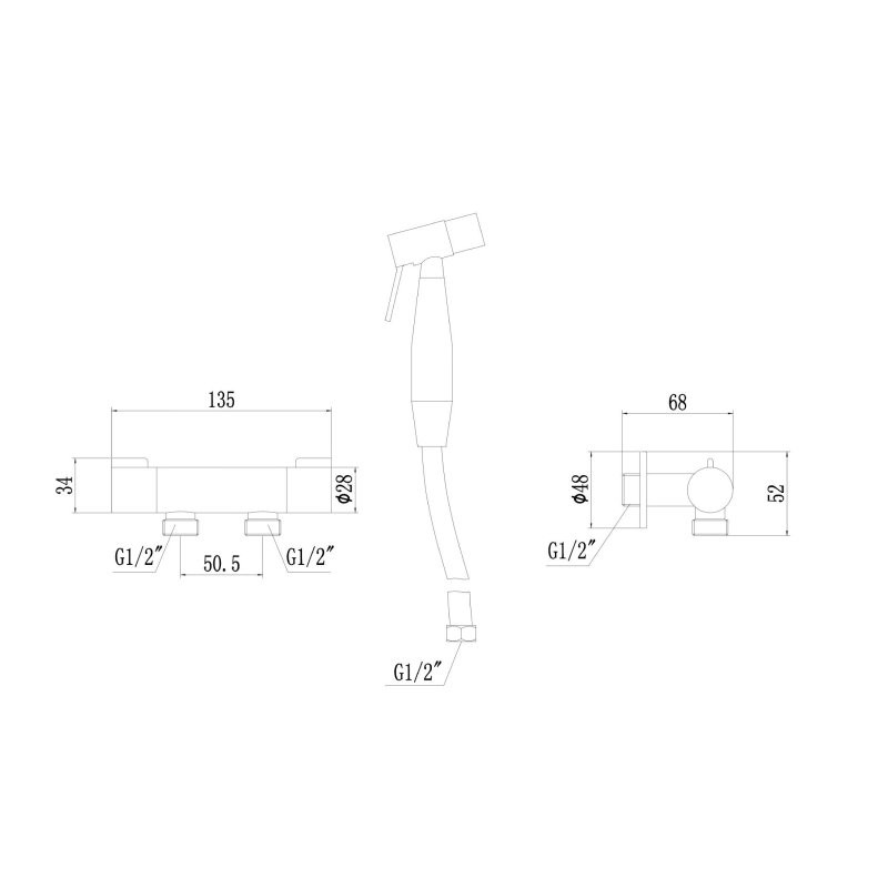 Особенностью этого гигиенического душа является отсутствие смешивания горячей и холодной воды. Керамическая кран-букса обеспечивает плавное управление напором воды, а дополнительный отвод на 1/2" предоставляет возможность использования для различных нужд.