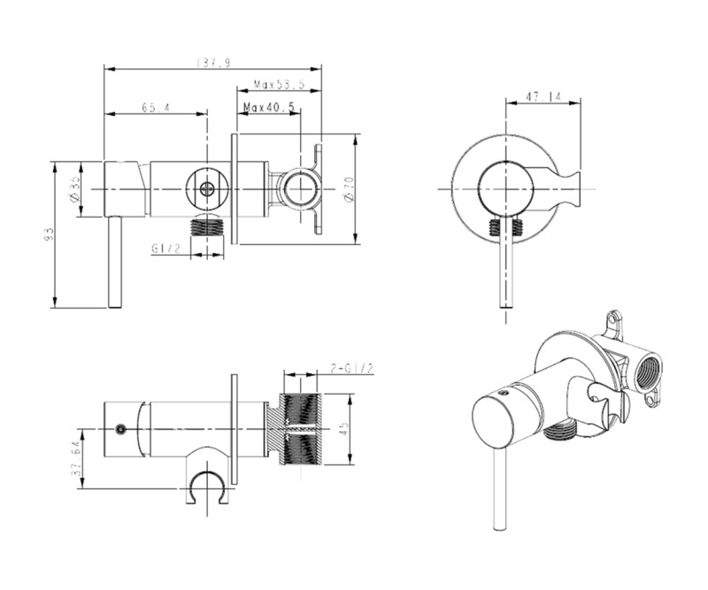 Комплектация: смеситель, внутренняя часть, шланг, лейка;