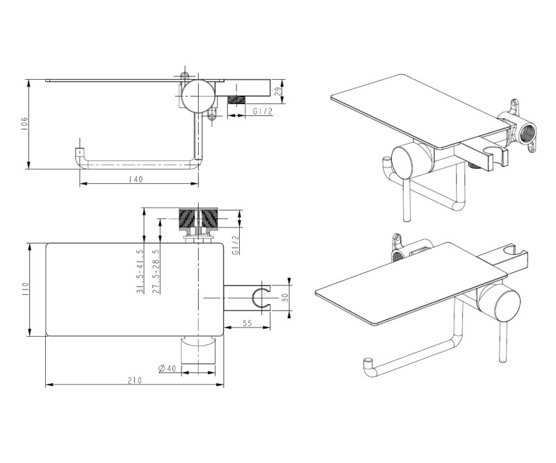 Гигиенический душ со смесителем Bronze de Luxe SCANDI 708/1BR, бронза. Монтаж: внутренний (скрытый). Оснащен держателем для туалетной бумаги и полочкой.