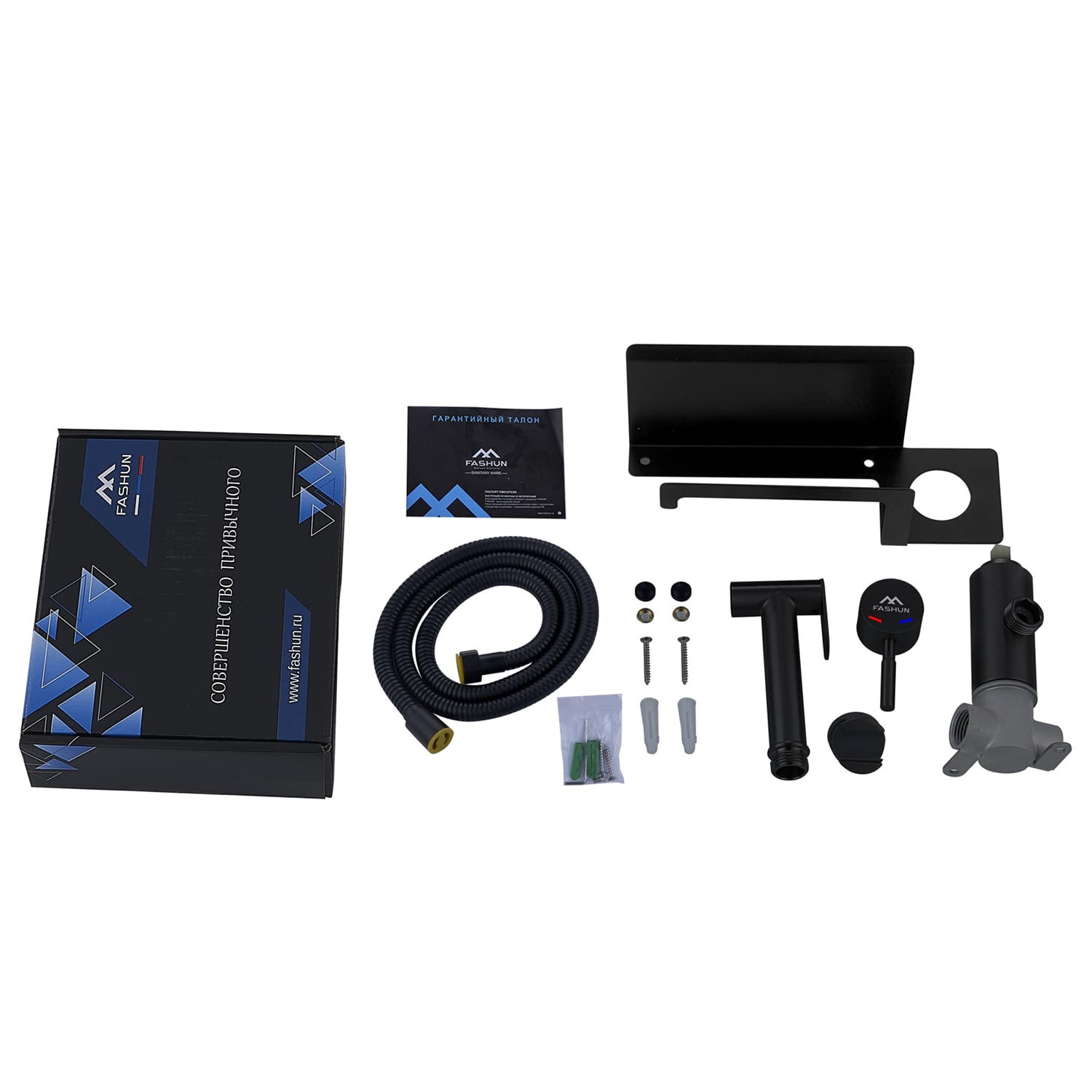 Гигиенический душ со смесителем и держателем туалетной бумаги FASHUN A57703-7, чёрный