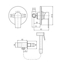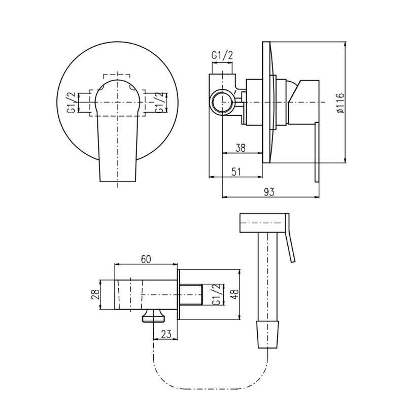 Комплектация: смеситель, лейка, шланговое подключение с держателем лейки, шланг, внутренняя часть;