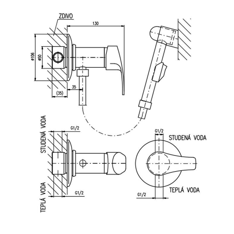 Гигиенический душ со смесителем Rav Slezak Kongo K047, хром