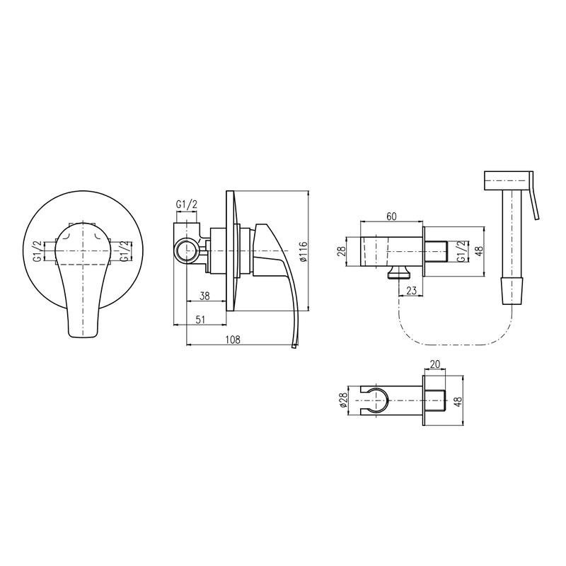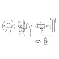 Комплектация: смеситель, лейка, шланговое подключение с держателем лейки, шланг, внутренняя часть;
