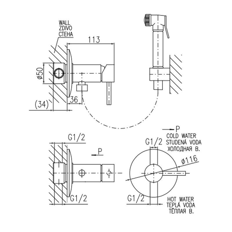 Гигиенический душ со смесителем Rav Slezak Seina SE947/1CMAT, черный