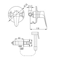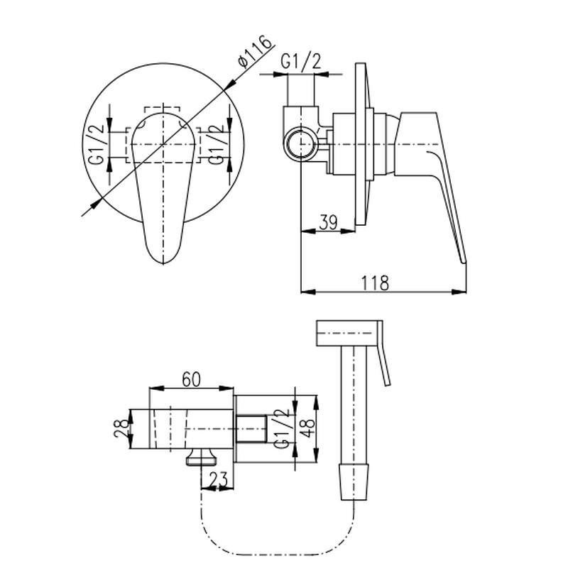 Комплектация: смеситель, лейка, шланговое подключение с держателем лейки, шланг, внутренняя часть;