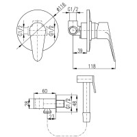 Комплектация: смеситель, лейка, шланговое подключение с держателем лейки, шланг, внутренняя часть;