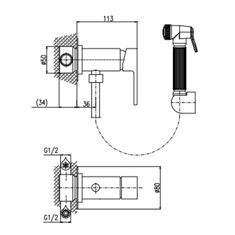 Гигиенический душ со смесителем Rav Slezak VLTAVA VT447/1CMAT, черный