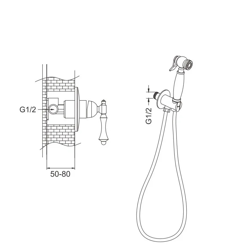 Гигиенический душ со смесителем Rose R0105, хром. Управление: рычажное. Материал: латунь. Монтаж: внутренний (скрытый).