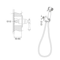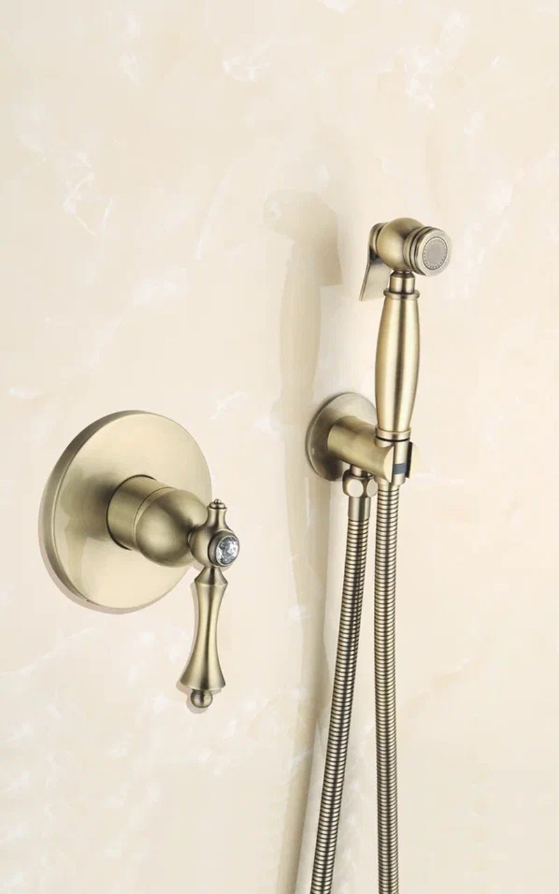 Гигиенический душ со смесителем Rose R0105Q, бронза. Управление: рычажное. Материал: латунь. Монтаж: внутренний (скрытый).