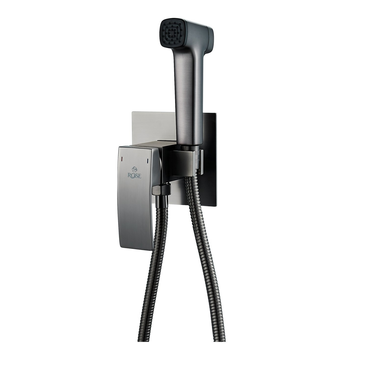 Гигиенический душ со смесителем Rose R1505T-2, оружейная сталь. Материал: латунь. Гарантия: 5 лет. Длина шланга: 100 см.