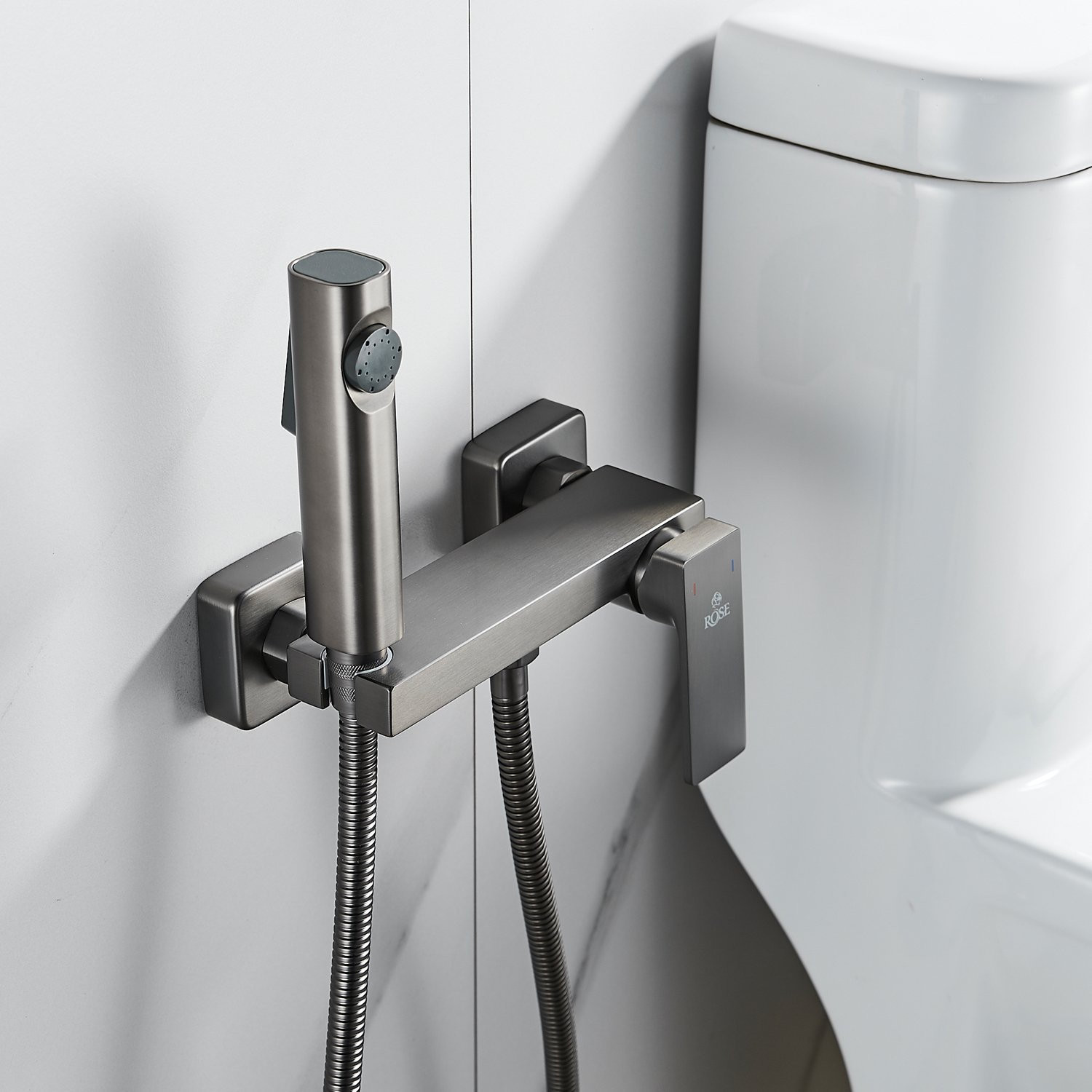 Гигиенический душ со смесителем Rose R1805T-1, пепельный. Управление: рычажное. Материал: латунь. Монтаж: настенный.